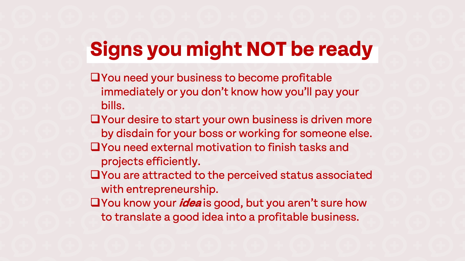 Just like there are signs you are ready to go out on your own, there are signs that it may not be the right time to start a business: